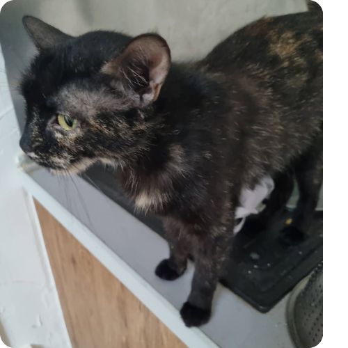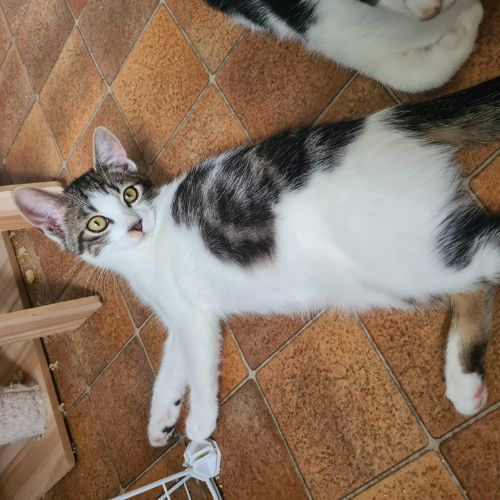 Joueuse, curieuse et gourmande Grizounette est une chatte craintive mais qui sait accorder sa confiance avec le temps.